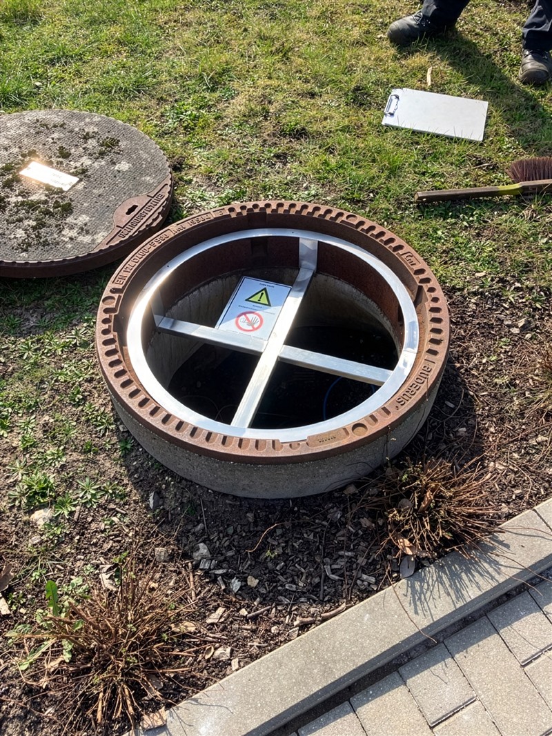 Auf dem Betriebsgelände gibt es zahlreiche Schächte, bei denen die Gefahren durch enge Räume und Absturzgefahr bestehen. Eine Kennzeichnung der Deckel von oben hat bisher keine dauerhafte Lösung geboten, da diese schnell abgetragen wurde bzw. verblasste.