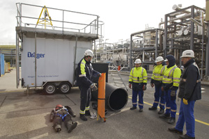 Von Katharina Nadolny und Werner Ochse im Unternehmen Dräger Safety AG & Co. KG aA wurde eine auf einem PKW-Anhänger installierte mobile Trainingsanlage entwickelt. Das in der Theorie vermittelte Wissen kann damit in der Praxis unmittelbar geübt werden. Dazu gehören unter anderem das Einsteigen in Silos, Tanks oder Schächte oder das Retten von Personen. Auch können verschiedenste Einsatzbedingungen wie Hitze, Nebel, Teilbeflutung, verschiedene Einstiege und Rohrsysteme simuliert werden. Mit einem Flächenbedarf von 10 mal 10 Metern kann die mobile Anlage praktisch überall eingesetzt werden.