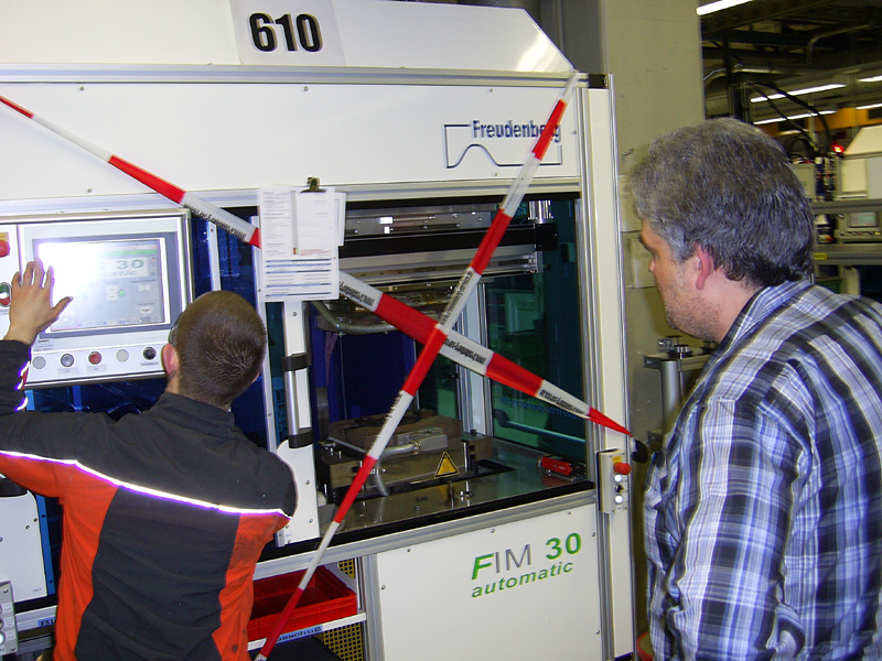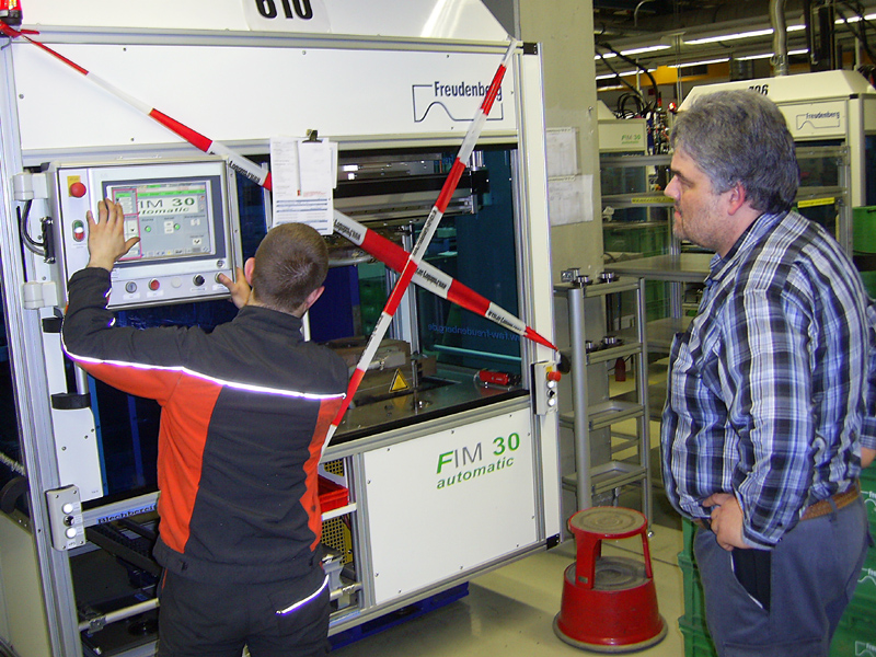 Bei Reparatur-, Wartungs- und Instandhaltungsarbeiten müssen Maschinen häufig in Probebetrieb genommen werden, obwohl eine Schutzeinrichtung demontiert oder deaktiviert wurde. Dadurch entstehen für den Handwerker mechanische, elektrische, chemische und weitere Gefährdungen. Die Freudenberg Sealing Technologies GmbH & Co. KG, Weinheim, stellt bei diesen Arbeiten eine zweite Person, genannt „Schutzkollege“, zur Seite.