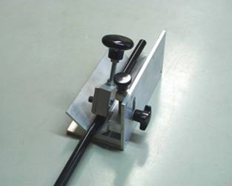 Eine Schlitzvorrichtung stellt sicher, dass ein Abrutschen beim Aufschneiden der Schläuche vermieden wird. Der zu bearbeitende Schlauch wird über zwei Rollen geführt, während er von oben durch ein fest installiertes Messer aufgeschnitten wird. Die Schnitttiefe ist dabei variabel.