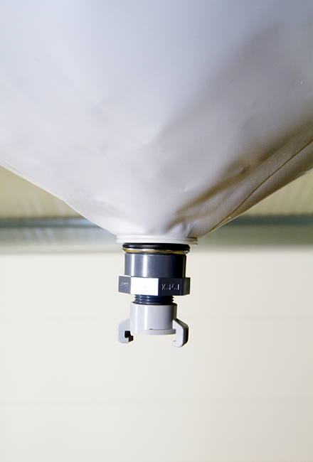 Alle Anschlussteile bestehen zur Erhöhung der Arbeitssicherheit aus Kunststoff. Aufgrund der Materialwahl ist die Gesamtkonstruktion sehr leicht und kann mit Seilen am Hallendach befestigt werden. Ein Trichter der Größe 1 mal 1 Meter wiegt rund 1 Kilogramm. Die Auffangtrichter werden quadratisch in drei Standardgrößen bis 2 mal 2 Meter und rechteckig in ebenfalls drei Standardgrößen bis 1 mal 5 Meter angeboten. Sondergrößen sind möglich.