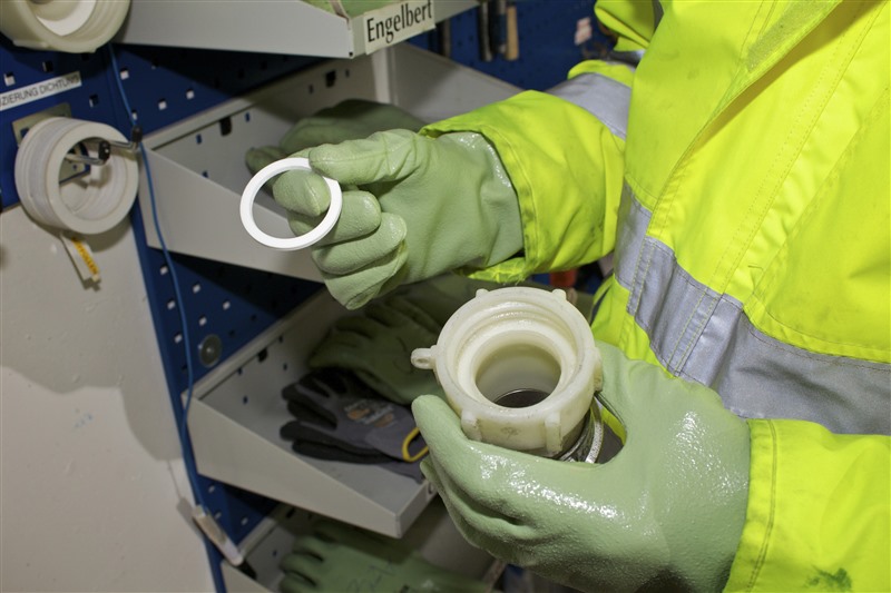 Ein alltäglicher Vorgang in unseren Betrieben: Ein Transportbehälter wird mittels eines Adapterstücks zur Entleerung an einen Kessel angeschlossen. Die übliche weiße Dichtung ist am Arbeitsplatz nicht vorrätig. Also verwendet der Mitarbeiter in bester Absicht die bereitliegende grüne Dichtung. Erst später bemerkt er, dass bei dem Vorgang geringe Mengen des Produktes aus dem Adapter langsam auf den Boden tropfen.