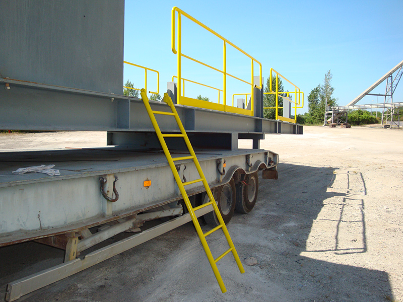 Die neue Vorgehensweise basiert auf einem bereits vorhandenen Tiefladeranhänger, der zu einer mobilen Arbeitsplattform umgebaut wurde. Der etwa 7 Meter lange, dreiachsige Tieflader verfügt nun über einen 14 Meter langen Tragrahmen, der 5,7 Meter über die hintere Achse hinausragt. Auf diesem Rahmen befindet sich eine Plattform, die ausreichend Platz für einen Krangreifer bietet. Die Plattform ist mit Aufstiegshilfen und steckbaren Geländern ausgestattet. Soll ein Greifer im geöffneten Zustand aufgenommen werden, können die Geländer mit wenigen Handgriffen entfernt werden.
