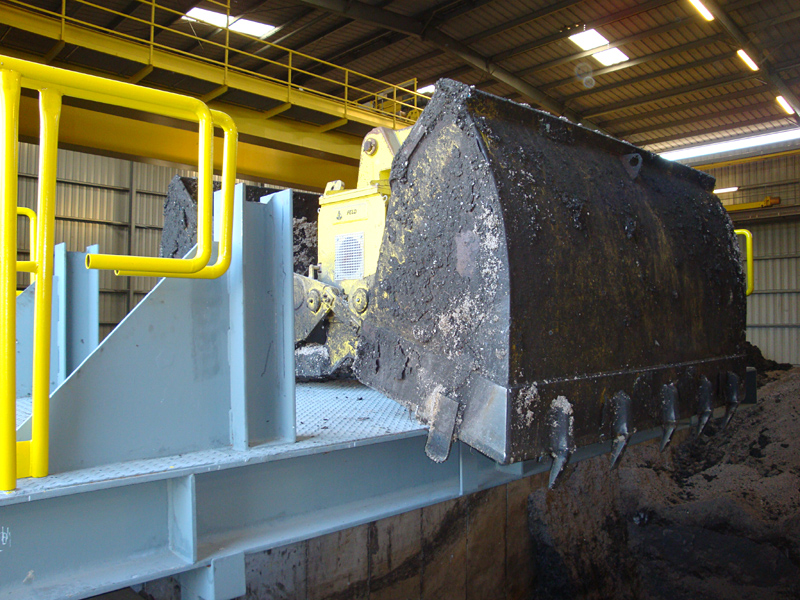 Sekundärbrennstoffe (Fluffe) für ein Zementwerk der Firma Schwenk Zement KG, Bernburg, werden in einer großen Halle eingelagert, die ein Lagervolumen von 90 x 30 x 5 Meter unterhalb der Erdgleiche umfasst. Bevorratung und Dosierung werden mit zwei Hallenkränen durchgeführt. Die Greifer der Kräne müssen regelmäßig gewartet und ausgetauscht werden. Um den Greifer abzusetzen, räumt ein Radlader große Bereiche der Halle frei. Heiße Teile des Fahrzeugs können dabei die leicht entzündlichen Fluffe in Brand setzen. Für kleinere Arbeiten wird der Greifer auf dem Fluff abgesetzt und der Weg dorthin auf einer 5 Meter mächtigen Fluffschicht mit Paletten und Brettern ausgelegt. Für die Mitarbeiter besteht Gefahr, in den Fluff hineinzufallen und in ihm einzusinken.