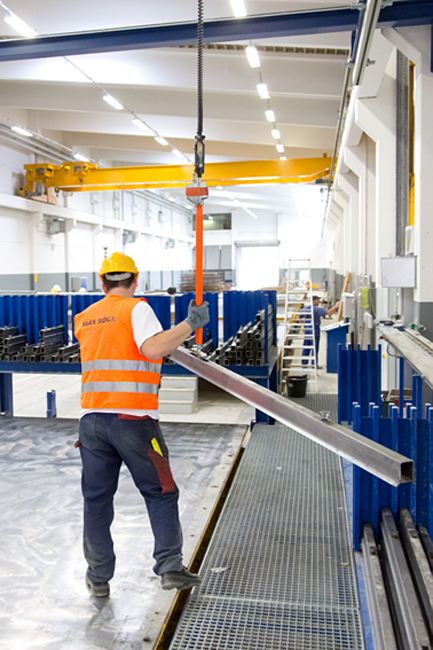 Der Schalungsmanipulator ist für Schalungsgewichte bis ca. 75 kg konzipiert. Er ist somit gleichermaßen geeignet für verhältnismäßig leichte U-Schalungen für die Elementdecken- und Doppelwandfertigung als auch für Massivwandschalungen. Andere Laststufen (bis 300 kg) sind auf Anfrage möglich.