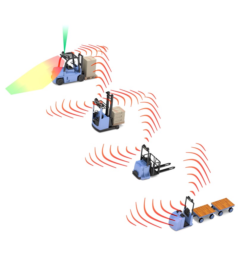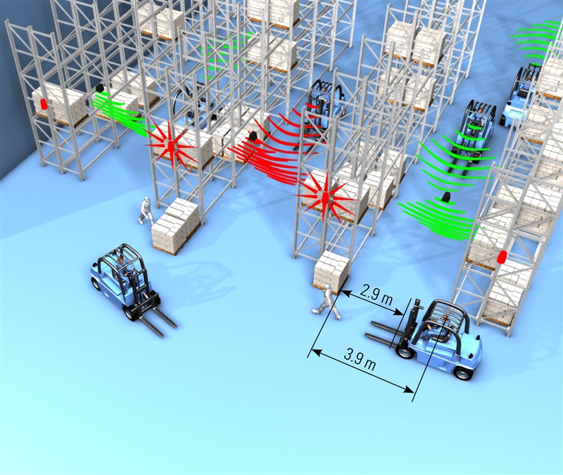 „NoColl“ ermöglicht eine Geschwindigkeitskontrolle bei Tordurchfahrt, auf Verkehrswegen oder in Kurvenbereichen, eine aktive Kreuzungssicherung, eine Hubhöhenkontrolle, z. B. bei Toröffnungen, aber auch eine Aktiv-Warnung für Fußgänger und/oder Mitgängerflurförderzeuge.