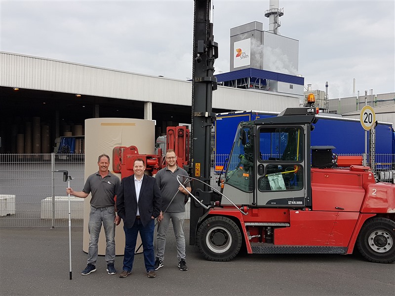 DS Smith ist ein international führender Verpackungsanbieter. Das Werk am Standort Aschaffenburg stellt seit 1874 mit rund 200 Mitarbeiterinnen und Mitarbeitern jährlich 420.000 Tonnen Wellpappenrohpapiere aus 100 % Altpapier her, welche zur Produktion von Verpackungen eingesetzt werden. Die dortige Logistik versendet pro Tag durchschnittlich 70 Lkw-Ladungen mit insgesamt bis zu 800 Rollen Wellpappenrohpapier. Das Stapler-Team hat es sich zur Aufgabe erklärt, insbesondere die schweren Gefährdungen (Absturz/Fallen), die etwa bei der Aufgabe von Sicherungsgurten oder Kantenschonern entstehen, möglichst komplett zu eliminieren.