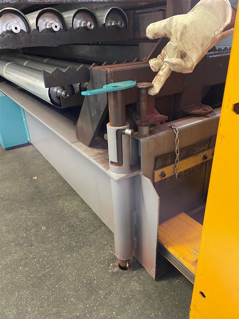 Befindet sich der Wagen in Entladeposition und ist der Sicherungsbolzen noch nicht in der Bodenbohrung eingeführt, verhindert eine Sperrklinke die Entladung des Autoklavenwagen.