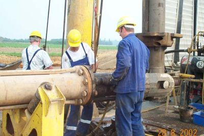 Dazu wurden acht Klauenseile am liegenden Rohr und an der Kelly der Bohranlage befestigt, damit das einzubauende Rohr durch die Kelly angehoben werden kann. Diese 34 mm dicken und ca. 40 kg schweren Klauenseile mussten dabei von Hand an den Bohrstangen und der Kelly befestigt und dabei auch gebogen werden. Neben der körperlichen Belastung barg der Einsatz der Klauenseile auch Unfallgefahren.